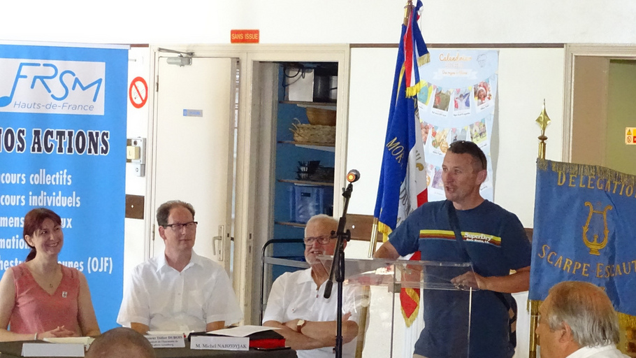 Dans la matinée du 11 juin, c’est à la salle des fêtes de Maulde, que M Nicolas Bouchez, maire, a accueilli la délégation Scarpe Escaut pour son assemblée générale. On notait la présence de Éric RENAUD, Conseiller Départemental du Nord, qui déclara son soutien aux sociétés musicales amateures. M Patrick Robitaille avait aussi répondu présent à l’invitation du délégué fédéral Jean-Luc Millet, qui souhaita la bienvenue aux représentants des sociétés musicales de la délégation.